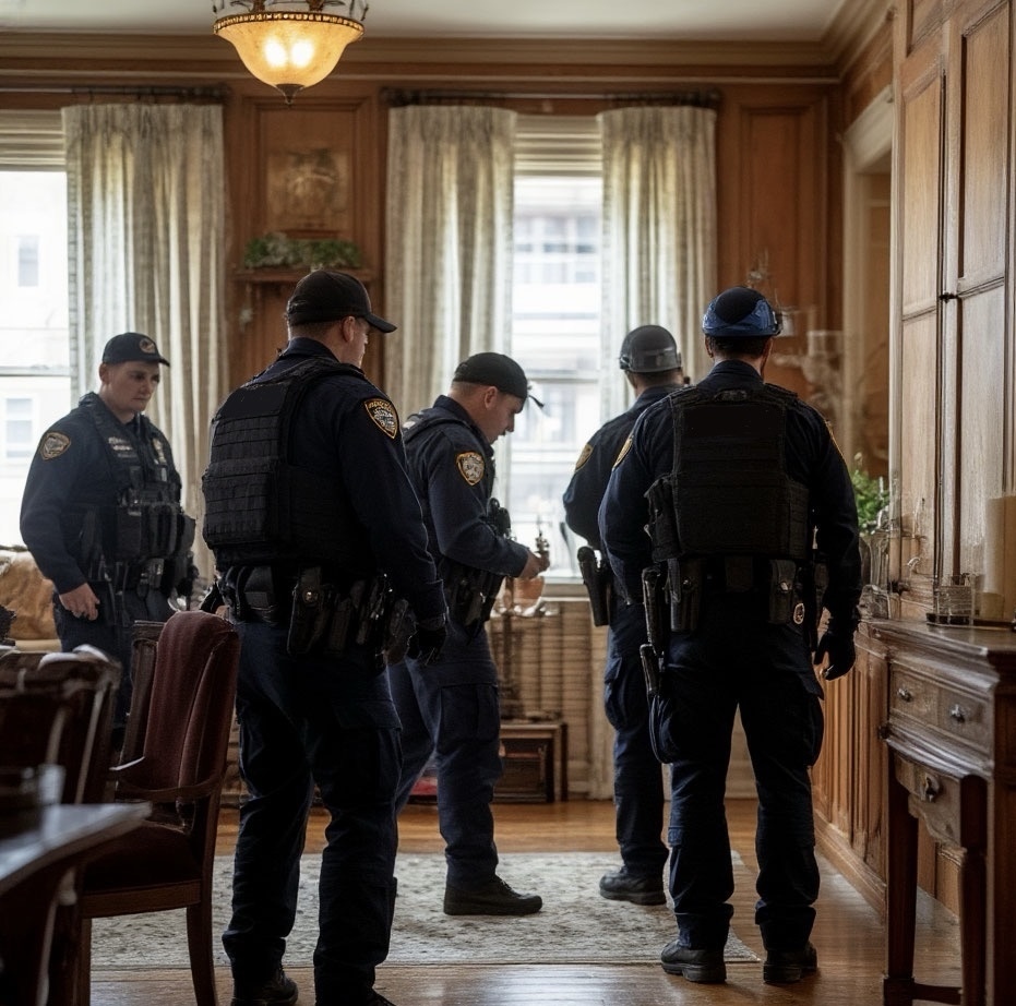 Далее силовики попадают в дом. Состав группы тоже может быть совершенно разный. От пары-тройки человек, до толпы вооруженного спецназа, оперативников, следователя и понятых. И тоже это никак не коррелируется с потенциальной опасностью обыскиваемых лиц. Довольно часто вооруженная поддержка встречается там, где не ожидается никакого сопротивления или какой-либо видимой опасности.